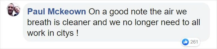 มันดีมาก อากาศดี หายใจได้คล่องบริสุทธิ์ ไวรัสตัวนี้มันช่าวทำให้โลกนี้มีสิ่งแวดล้อม อากาศ สดใสดีขึ้นมาก