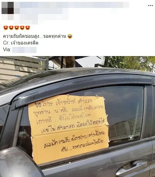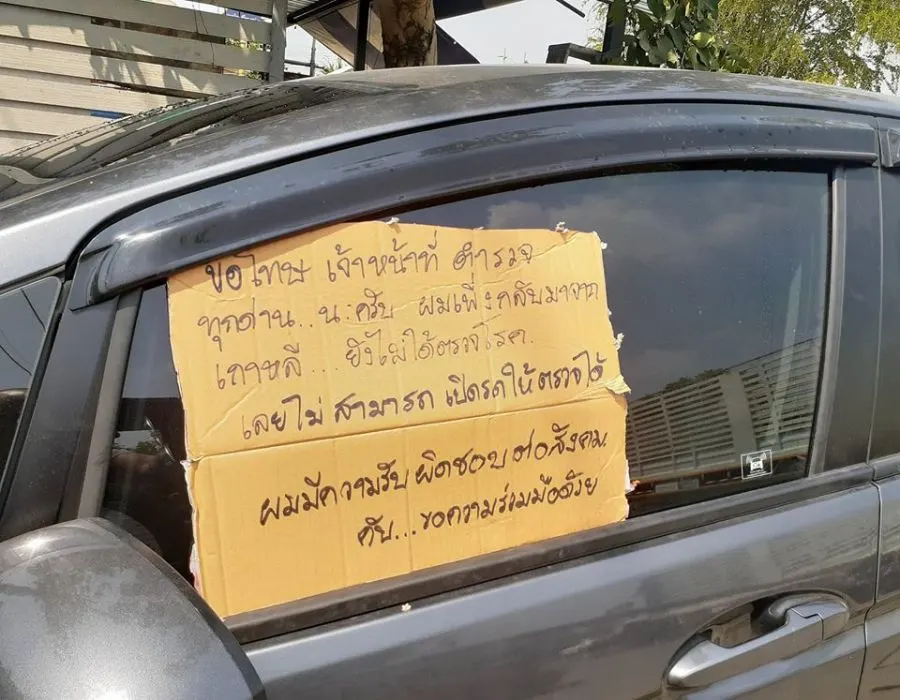“ขอโทษ เจ้าหน้าที่ตำรวจทุกด่าน นะครับ ผมเพิ่งกลับมาจากเกาหลี ยังไม่ได้ตรวจโรค เลยไม่สามารถเปิดรถให้ตรวจได้ ผมมีความรับผิดชอบต่อสังคมครับ…ขอความร่วมมือด้วย”