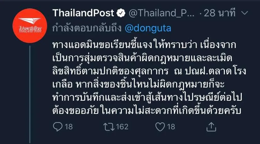 คำชี้เเจงของทางไปรษณีย์ไทย