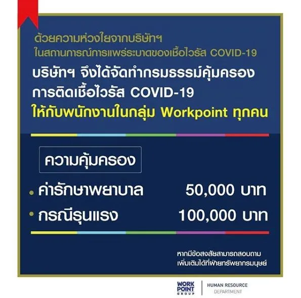 เสี่ยตา ปัญญา ทุ่มงบทำประกันโควิด19 ให้พนักงานทั้งเวิร์คพอยท์ ฟรี โดยไม่เก็บเงินสักบาทเดียว