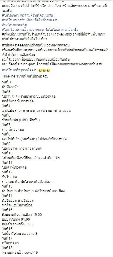 หนุ่มทำงานร้านเหล้าย่านทองหล่อ-เอกมัย ติดเชื้อโควิด-19 อึ้งไทม์ไลน์ 15 วันก่อนป่วย ไปมาทั่ว ชาวเน็ตหวั่นคนติดเชื้อเพิ่มเป็นเบือ