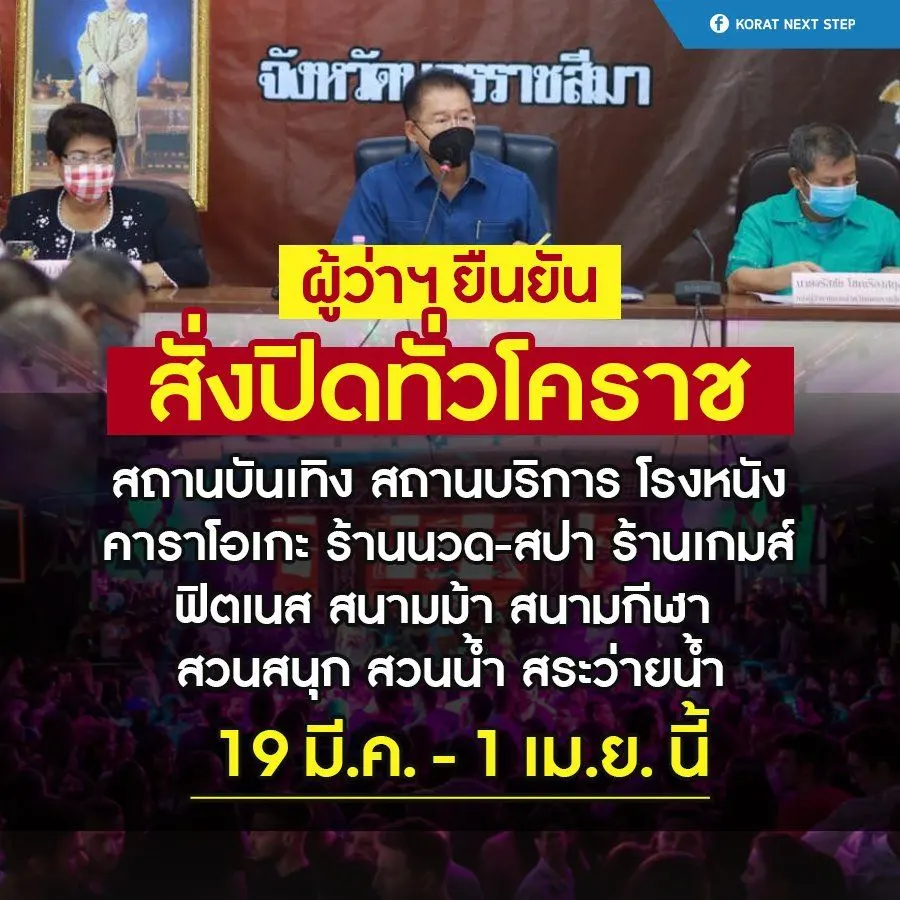 ผู้ว่าฯโคราชสั่งด่วน ปิดสถานบันเทิง – สถานบริการ 14 วัน