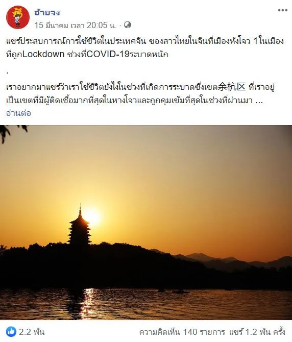สาวไทยในจีน เผยวิธีเอาตัวรอดจากเชื้อ COVID-19 ในเมืองหางโจว