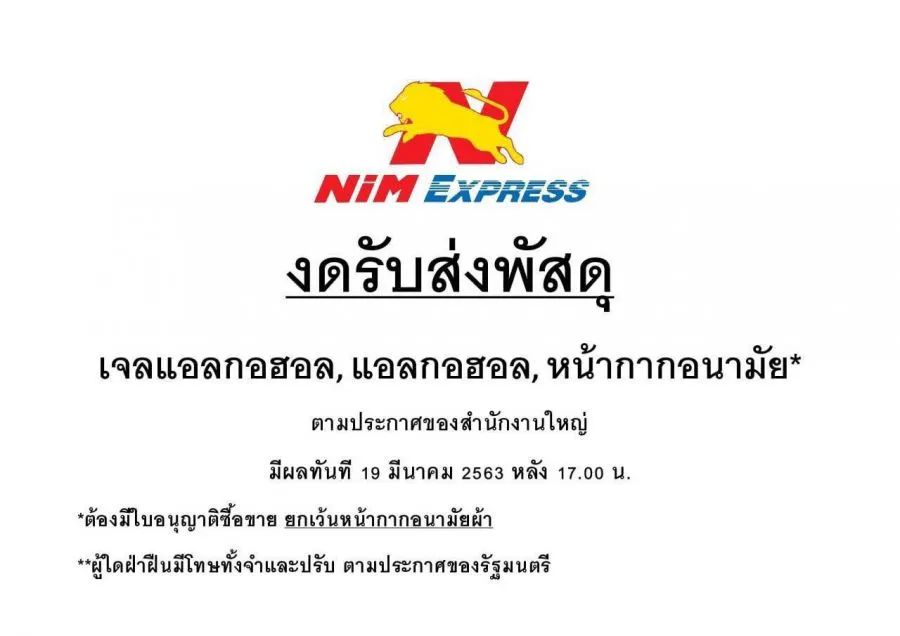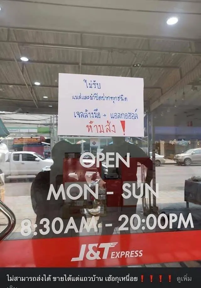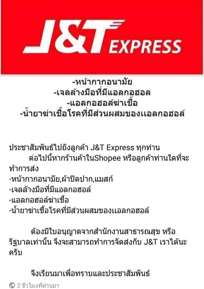 งานนี้คงต้องรอการชี้แจงว่าทำไปขนส่งเอกชนถึงออกมาแป๊ะป้ายไม่รับส่งเจลล้างมือและหน้ากากอนามัยกันเยอะขนาดนี้