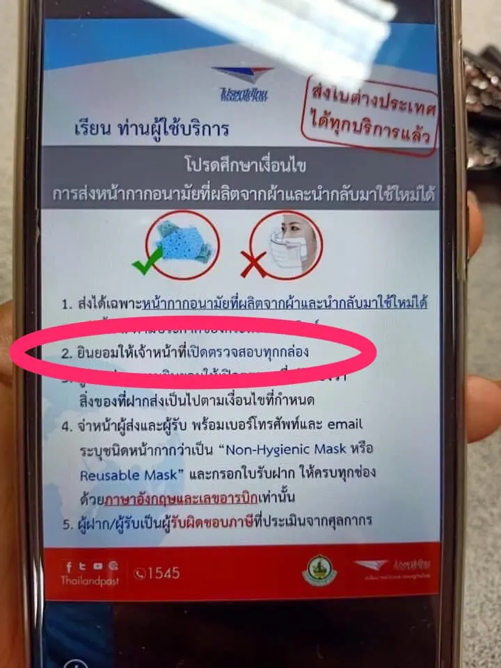 แต่หากส่งระหว่างประเทศ งดรับฝากครับ เนื่องจากของเหลวเป็นสิ่งของต้องห้ามฝากส่งและในส่วนหน้ากากอนามัย ช่วงสถานการณ์ไวรัส Covid-19 ห้ามฝากส่งครับ แต่หน้ากากผ้าส่งได้ครับ pic.twitter.com/xMnpTyLvls