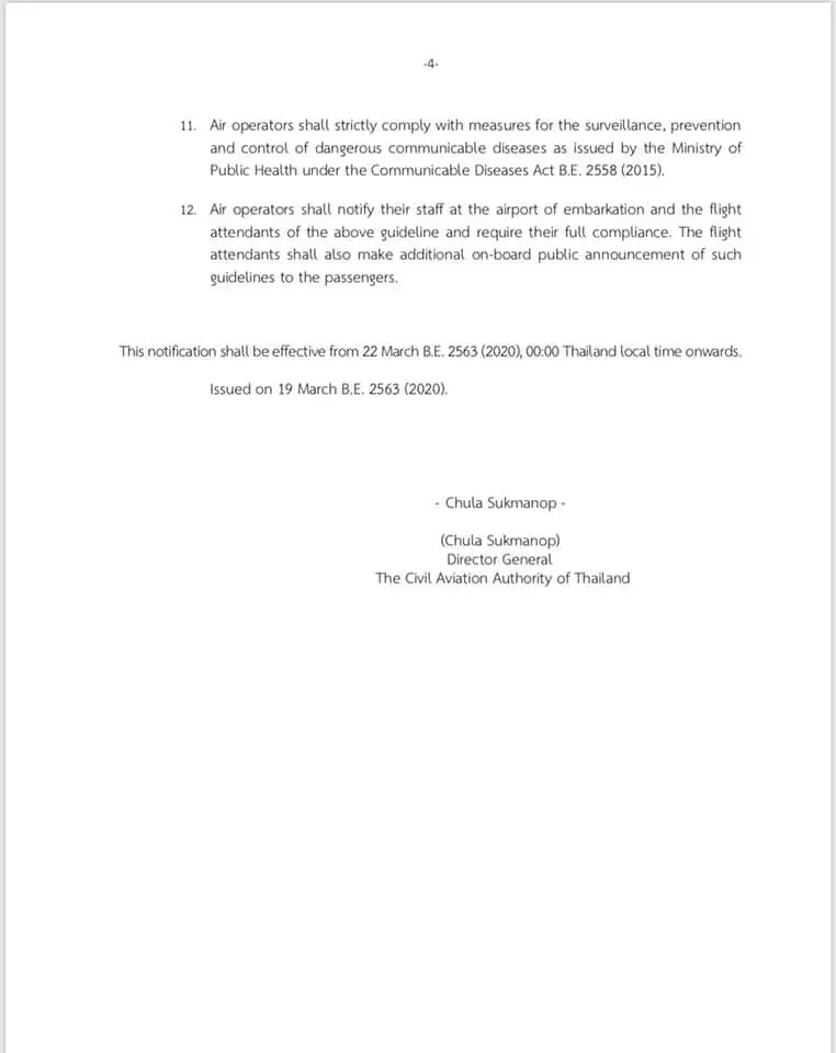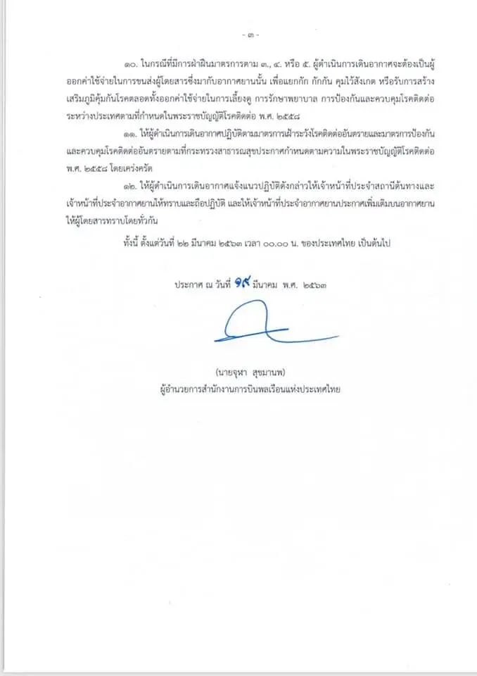 ประกาศ สำนักการบินพลเรือน ฉบับนี้ ออกวันที่ 19 มีนาคม 2563 มีผล บังคับใช้วันที่ 22 มีนาคม 2563 เป็น ต้นไป