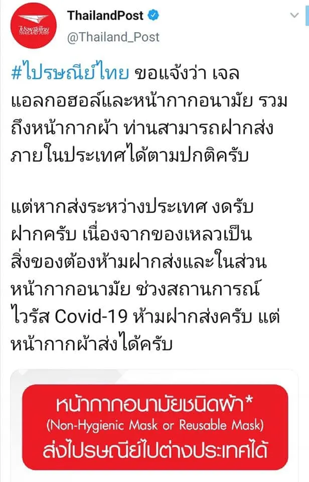 — ThailandPost (@Thailand_Post) March 19, 2020