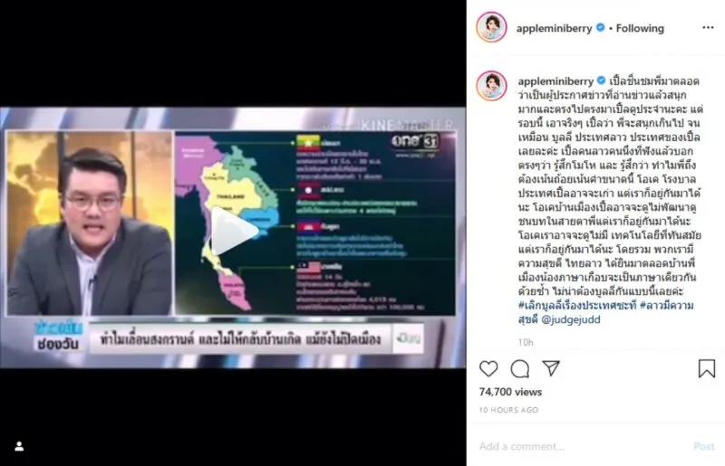 เรียกได้ว่าเป็นเหตุการณ์ที่ทำให้สาวลาว อย่าง แอปเปิ้ล สีสะเหงียน โดยได้ออกมาโพสต์เดือดผ่านทางไอจี ถึง จั๊ด ธีมะ ที่พูดถึงเรื่อง COVID ที่กระจายอยู่ทั่วโลก ยกเว้นประเทศพม่า และ ลาว มีแค่ 2 ประเทศที่ไม่พบการติด COVID โดยยกโรงบาลของลาว ว่า อุปกรณ์ทางการแพทย์ ไม่มี ไม่เข้าถึง ด้อยกว่าของประเทศไทย ในโรงบาลชนบท โดยได้โพสต์ระบุข้อความว่า เปิ้ลชื่นชมพี่มาตลอดว่าเป็นผู้ประกาศข่าวที่อ่านข่าวแล้วสนุกมากและตรงไปตรงมาเปิ้ลดูประจำนะคะ แต่รอบนี้ เอาจริงๆ เปิ้ลว่า พี่จะสนุกเกินไป จน เหมือน บูลลี่ ประเทศลาว ประเทศของเปิ้ลเลยละค่ะ เปิ้ลคนลาวคนนึงที่ฟังแล้วบอกตรงๆว่า รู้สึกโมโห และ รู้สึกว่า ทำไมพี่ถึงต้องเน้นถ้อยเน้นคำขนาดนี้