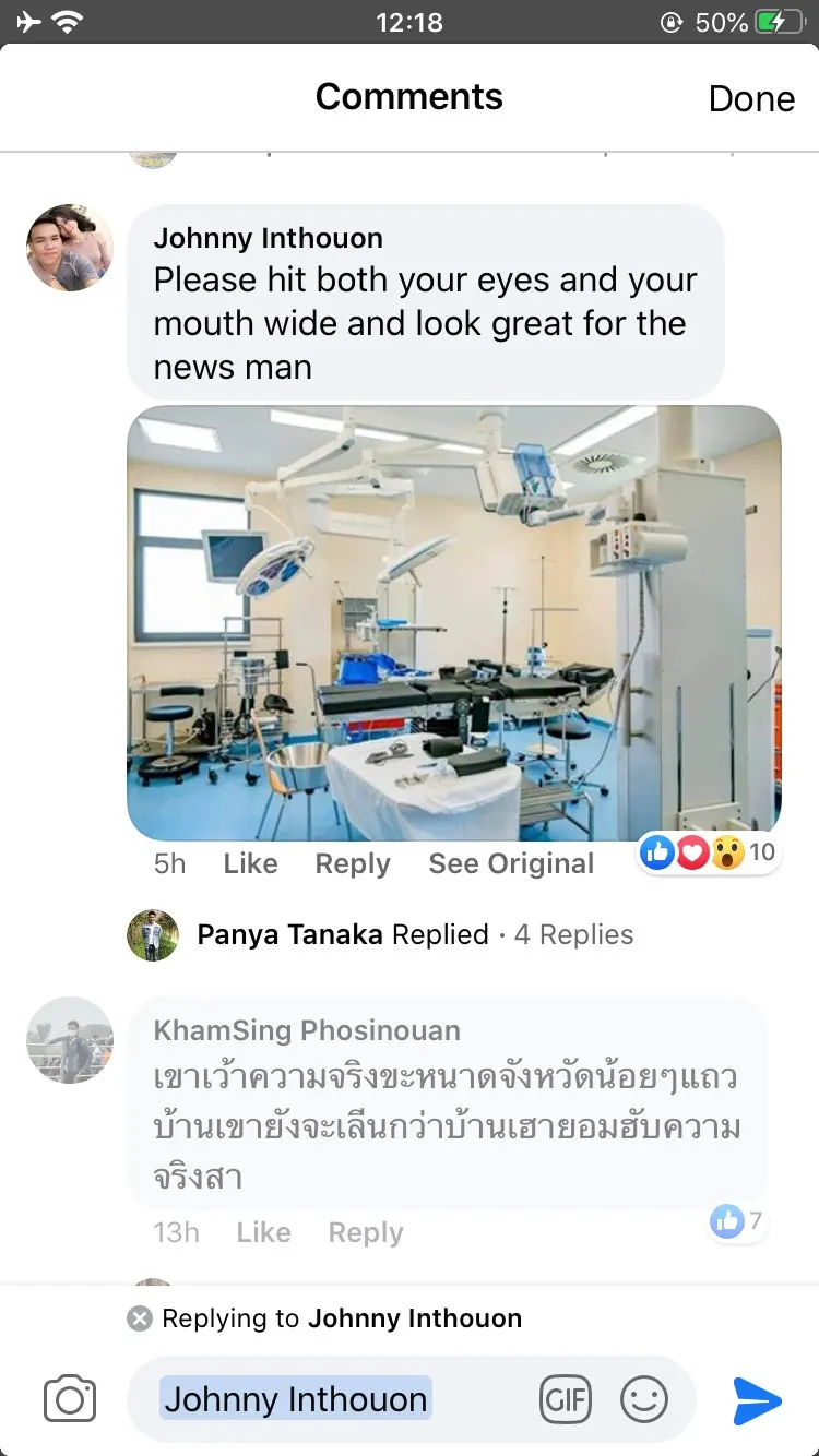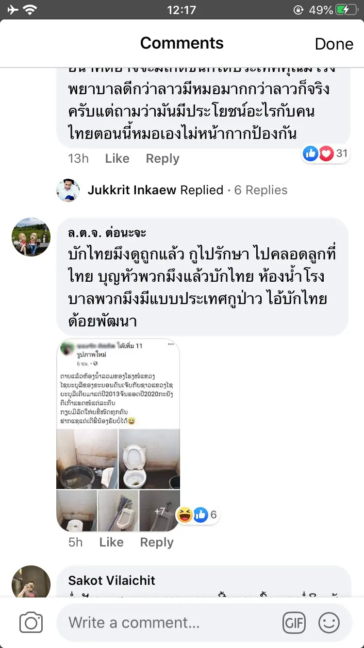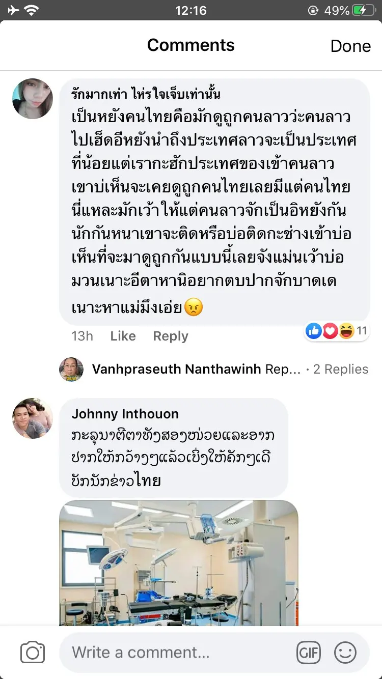ชาวลาวไม่พอใจรายการ "ข่าวเย็นช่องวัน" ทางสถานีโทรทัศน์ช่อง one 31 ที่จัดโดยนายธีมะ กาญจนไพริน หรือ "จั๊ด" ด่าโรงพยาบาลลาวสาดเสีย ว่าสุดกันดารล้าสมัยไม่มีทางมีเครื่องมือตรวจหาเชิ้อโรคไดๆได้