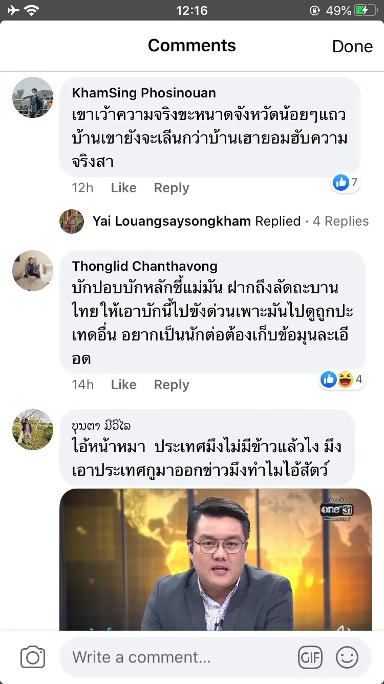 คำพูดดังกล่าวนั้นได้สร้างความไม่พอใจให้กับชาวโซเชียลลาวเป็นอย่างมากและมีการนำคลิปที่ว่ามาโพสต์พร้อมด่ากลับคนไทยอย่างสนุกปาก