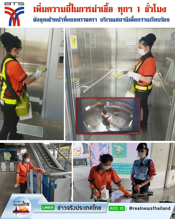 บริษัทฯ ให้ข้อมูลเพิ่มเติมว่า ปัจจุบันรถไฟฟ้าบีทีเอสมี มาตรการการป้องกันเชื้อโรค เพิ่มความถี่ในการฆ่าเชื้อโดยใช้น้ำยาฆ่าเชื้อ เช็ดถูทำความสะอาด พื้นที่และบริเวณที่เป็นจุดสัมผัสร่วมสาธารณะ เช่น บริเวณสถานี ลิฟต์ ปุ่มกดลิฟต์ ตู้หยอดเหรียญ ตู้จำหน่ายตั๋วอัตโมัติ ราวจับบันได/บันไดเลื่อน และจุดสัมผัสอื่นในทุกๆ 1 ชั่วโมง นอกจากการเพิ่มความถี่ในการฉีดพ่น และเช็ดน้ำยาฆ่าเชื้อภายในขบวนรถ รวมถึงเตรียมเจลล้างมือฆ่าเชื้อบนโต๊ะตรวจสัมภาระและโต๊ะตรวจการทั้ง 2 ฝั่งทางเข้าออกของสถานีรวมทั้งจัดชุดเจ้าหน้าคอยตรวจตรา บริเวณสถานีและภายในขบวนรถเพื่อดูแลความเรียบร้อย ในการให้บริการประชาชน