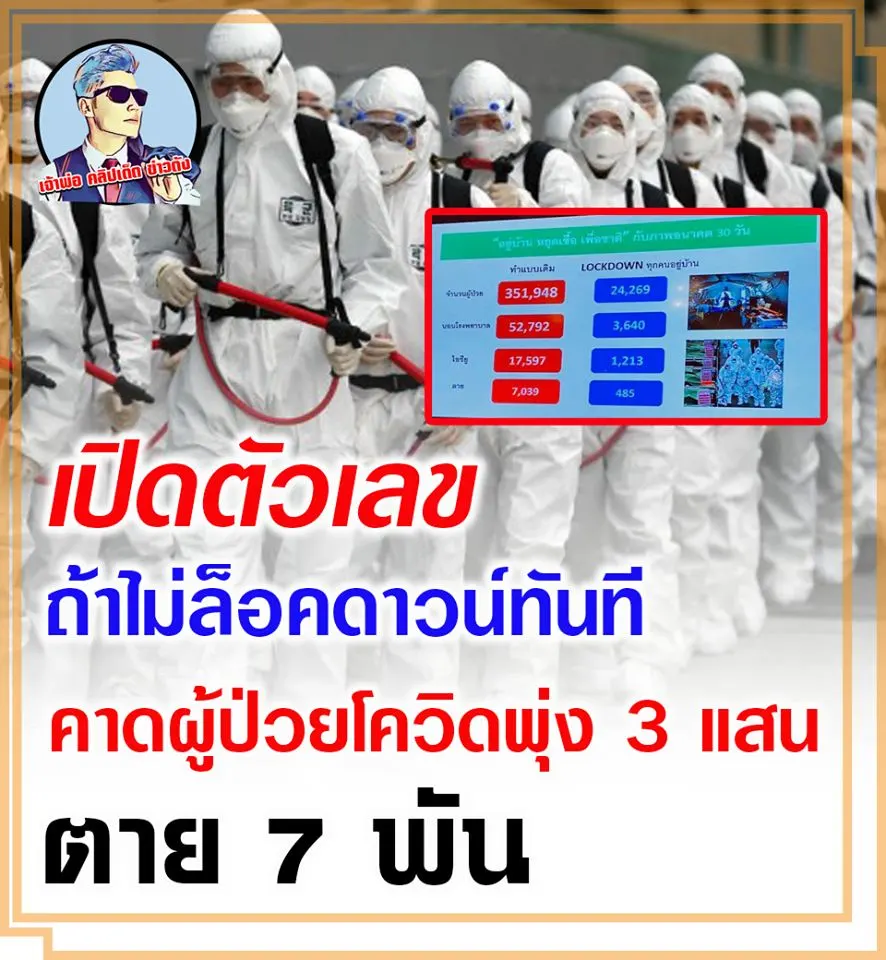 เปิดตัวเลข ถ้าไม่ล็อคดาวน์ทันที คาดผู้ป่วยโควิดพุ่ง 3 แสน ตาย 7 พัน
