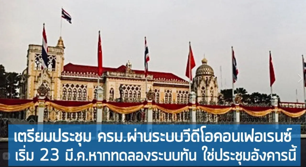 ทำเนียบรัฐบาล นำร่อง ปรับรูปแบบการ ทำงาน ผ่านออนไลน์ ใช้ประชุมวีดีโอคอนเฟอเรนท์ แทนการประชุมปกติ เริ่มจันทร์ที่ 23 หากทดลองระบบทัน เริ่มใช้ปนะชุม ครม. อังคารหน้า