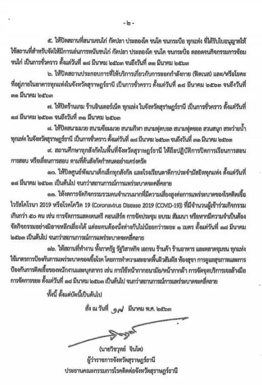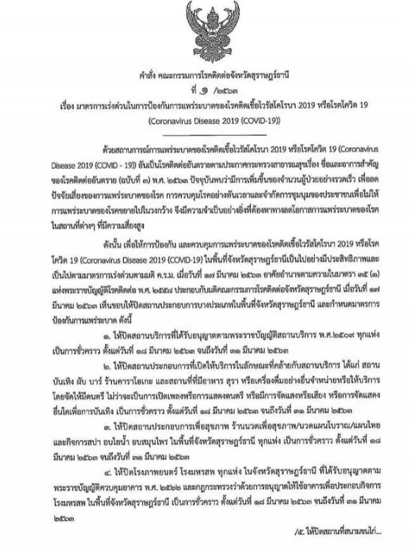 4.ปิดโรงภาพยนตร์ โรงมหรสพทุกแห่งในพื้นที่จังหวัด