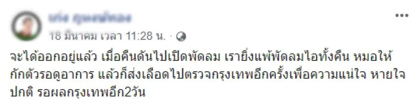 จากกรณีผู้ใช้เฟซบุ๊ก เก่ง ภูหงษ์ทอง ซึ่งเป็นหนึ่งในเซียนมวย ชาวจังหวัดนครราชสีมา ได้โพสต์ข้อความว่า “ผลการตรวจยืนยันผมติดโควิด 19 สิ่งที่แย่กว่าคือ ปอดผมผลิตออกซิเจนได้ต่ำกว่ามาตรฐานต้องใช้เครื่องช่วยหายใจ ใครที่โทร. มาแล้วผมไม่ได้รับสาย ผมไม่มีแรงพูดนะครับ ต้องขอโทษด้วยครับ” จนเป็นกระแสส่งความห่วงใยไปทั่วทั้งโลกออนไลน์