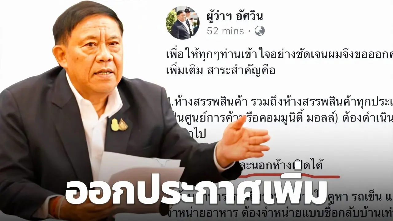ผู้ว่าฯอัศวินออกประกาศฉบับ 3 เพิ่มรายละเอียดปิดห้างฯ ร้านอาหาร