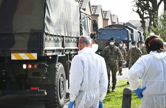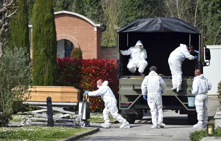 สูงสุดนับจากเชื้อปรากฏในดินแดน ทำให้ยอดคนตายในแคว้นนี้เพิ่มเป็น 3,095 ราย ซึ่งอัตราการตายและติดเชื้อมีแต่จะเพิ่มขึ้นทุกวัน จนทางรัฐบาลกลางต้องส่งทหารเข้ามาปิดแคว้นลอมบาร์ดี ขณะที่ศพกองสูงอยู่ในโบสถ์เพื่อรอประกอบพิธี ชาวอิตาลีรู้แล้วว่าสถานการณ์นี้ไม่ใช่เรื่องเล่นๆอีกต่อไป
