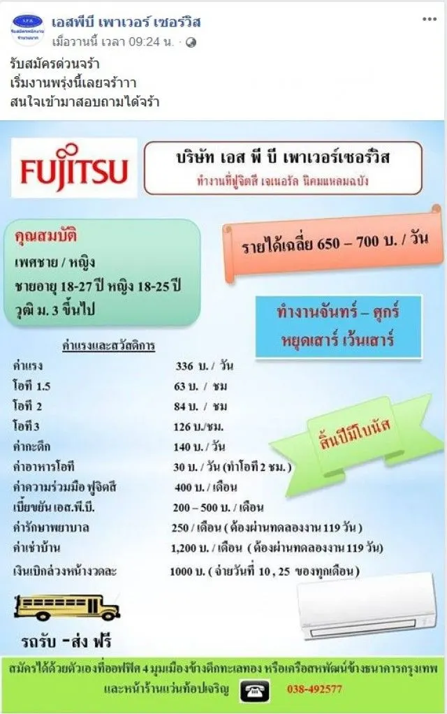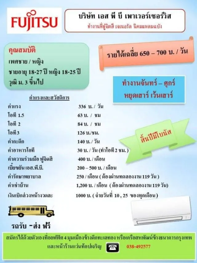 FUJITSU เปิดรับสมัครพนักงาน วุฒิ ม3 ขึ้นไป รายได้ 650 ต่อวัน