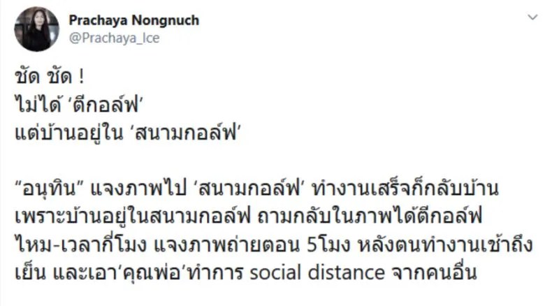 อนุทินชี้แจงภาพหลุด ไปตีกอล์ฟ ทั้งที่ช่วงนี้ให้อยู่บ้านเพื่อหยุดยั้งการแพร่เชื้อโควิด-19