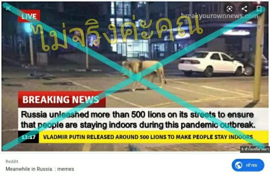 ข่าวปลอม! หลังมีข่าวว่า รัสเซีย สั่งปล่อยสิงโตกว่า 500 ตัว เพื่อป้องกันไม่ให้ประชาชนออกจากบ้าน