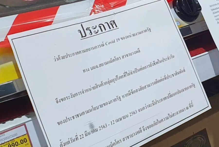 ใครคิดจะทำกับข้าวกินที่บ้าน ตอนนี้หม้อหุงข้าว!! เตาไฟฟ้า!! ไมโครเวฟ!! ที่ #Makroบางพลี ถูกทางการสั่งห้ามจำหน่ายนะครับ #อธิบายเพิ่มเติม สินค้าที่ทางการให้ห้างจำหน่ายได้มี 1.โซนซุปเปอร์มาเก็ต 2.ร้านขายยา 3.สินค้าเบ็ตเตล็ดที่จำเป็นต่อการดำรงชีวิต #คำถามคือ **หม้อหุงข้าวไม่ใช่สินค้าจำเป็นต่อการดำรงชีวิตหรอ