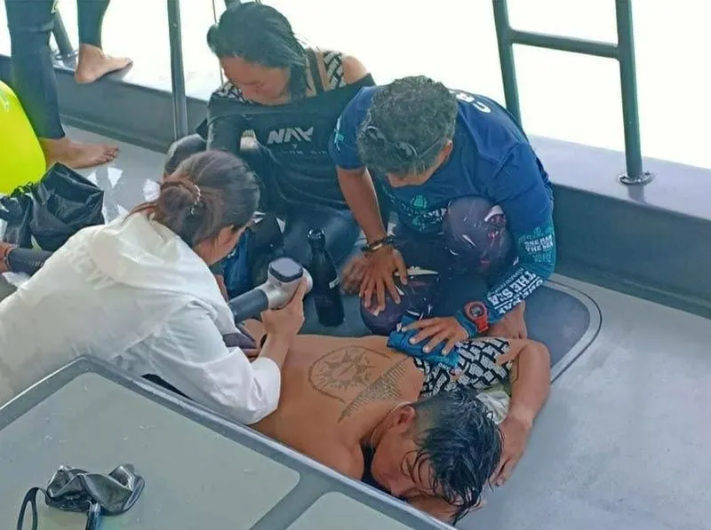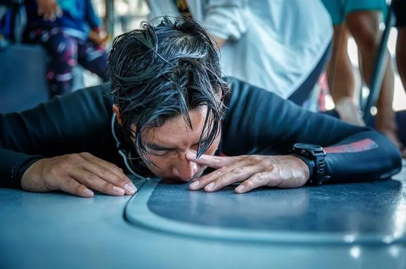 การว่ายน้ำในเช้าวันนี้จึงชะงักกลางคัน ต้องทำกายภาพบำบัด บนเรือชั่วคราว แต่อย่างที่พวกเราคาดคิดเอาไว้แล้วว่า ถึงแม้จะมีความเจ็บปวด ก็หยุดผู้ชายคนนี้ไม่ได้