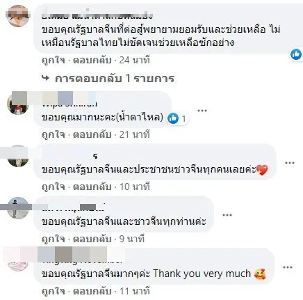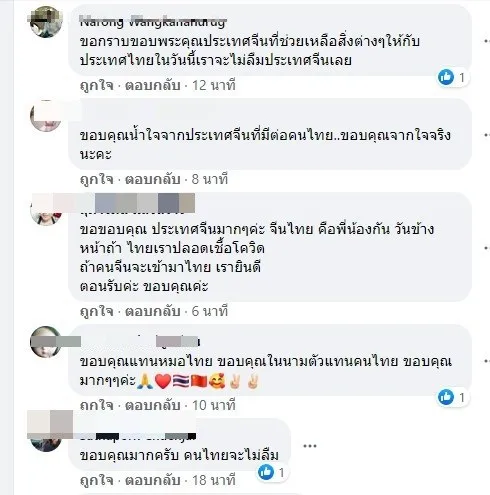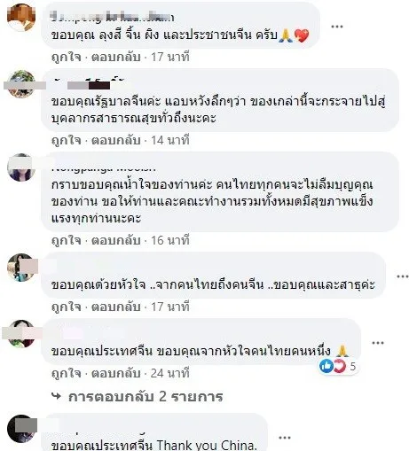 หลังจากโพสต์ดังกล่าวได้เผยแพร่ ก็มีชาวเน็ตคนไทยจำนวนมาก เข้าคอมเม้นต์ขอบคุณรัฐบาลจีนที่มอบความช่วยเหลือ ส่งเวชภัณฑ์ ต่างๆที่จำเป็นให้กับแพทย์ไทย ซึ่งกำลังขาดแคลนอย่างหนัก ในช่วงวิกฤตไวรัสโควิด-19 ที่กำลังระบาดในประเทศ