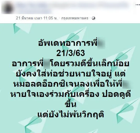 ก่อนหน้านี้เมื่อวันที่ 21 ทางภรรยาได้โพสต์บอกอาการของสามีว่าดีขึ้นเล็กน้อยแต่ยังไม่พ้นวิกฤต ก่อนที่ข่าวร้ายจะเกิดขึ้นกับครอบครัวของเธอ