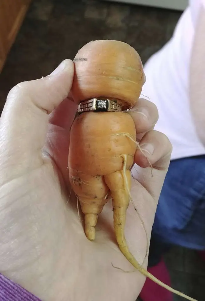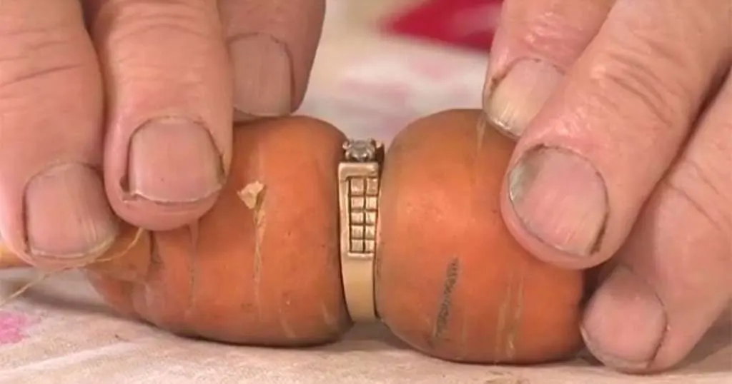 โดย คุณยายท่านนี้ชื่อ Mary Grams อายุ 84 ปีเป็นชาวแคนาดา เธอบังเอิญพบ “แหวนหมั้น” ของตนเองรัดแครอท หลังจากสะใภ้นำแครอทจากหลังบ้านมาประกอบอาหาร ด้านสะใภ้เผยว่าภายแรกจะโยนทิ้งให้สุนัขแล้วแต่เห็นรูปร่างแปลกจึงตัดสินใจเก็บใส่ถังเอาไว้