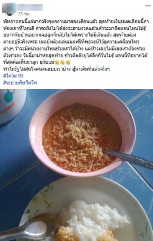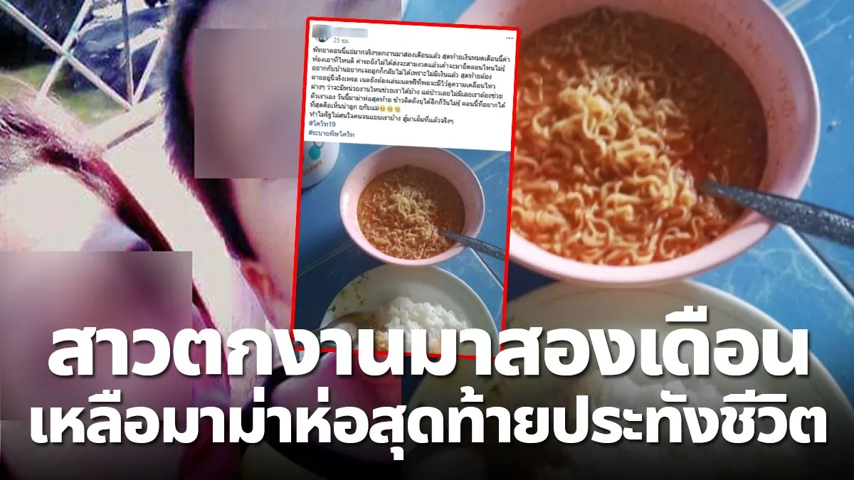 สาวโพสต์โควิดทำตกงาน อยากกลับบ้านหาลูกแต่ยังไม่มีเงิน เหลือบะหมี่ห่อสุดท้ายให้ยังชีพ