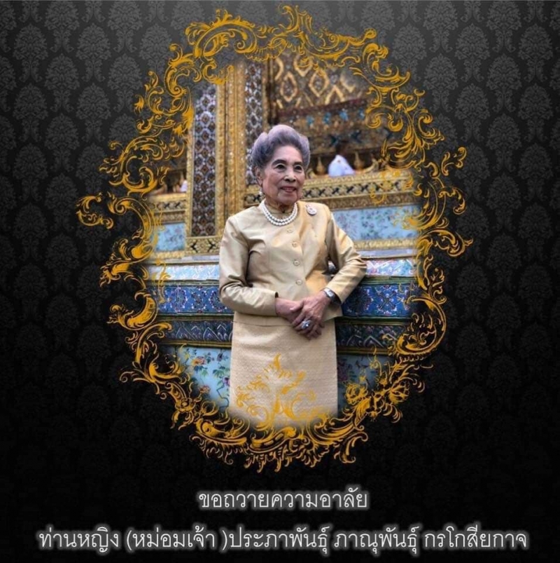 โดย ท่านหญิงประภาพันธุ์ ภาณุพันธุ์ กรโกสียกาจ ได้สิ้นชีพิตักษัยแล้วสิริพระชันษา 90ปี 3เดือน ก่อน 7 นาฬิกาของเช้าวันนี้ ณ โรงพยาบาลจุฬาภรณ์ เขตหลักสี่ กรุงเทพมหานคร
