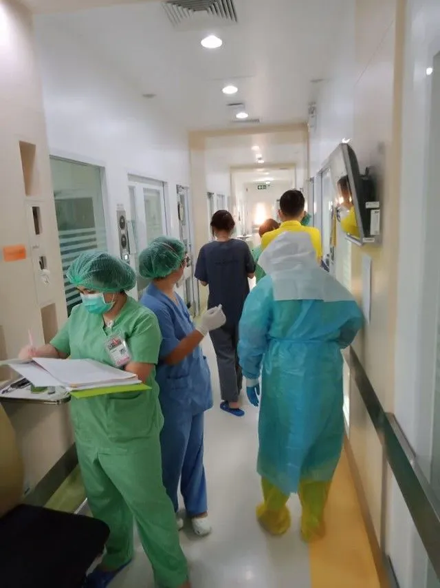 หมอศิริราช เผยภาพทีมแพทย์นับสิบ ใช้ถุงพลาสติกหุ้มเท้า ดูแลผู้ติด COVID