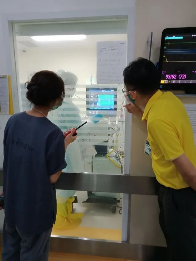 แม้จะเป็นวันหยุด เราก็ต้องใช้หมอ 2 คน พยาบาล 7 คน ผู้ช่วยพยาบาล 2 คน และเจ้าหน้าที่อีก 2 คน ต่อเวร 8 ชั่วโมง สำหรับดูแลคนไข้โควิดวิกฤต 3 คน ของป้องกันตัวบางครั้งขาดมือต้องใช้ถุงพลาสติกธรรมดาหุ้มเท้าแทนถุงกันน้ำ