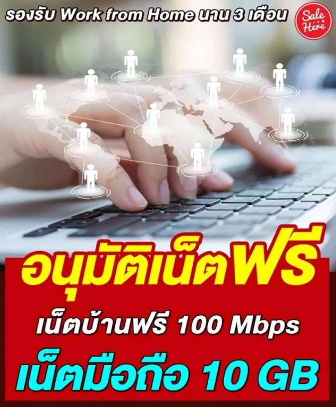 24 มี ค 63 เพจเฟสบุ๊ค SALE HERE ได้โพสต์ข้อความระบุว่า กสทช. อนุมัติ ให้ประชาชนใช้ เน็ตฟรี รองรับ Work from Home ใช้งานเน็ตมือถือเป็น 10 GB อัพสปีดเน็ตบ้าน 100 Mbps นาน 3 เดือน ถึง 30 มิถุนายน 63 สำหรับผู้ใช้งานในปัจจุบัน 1 คน ต่อ 1 หมายเลข