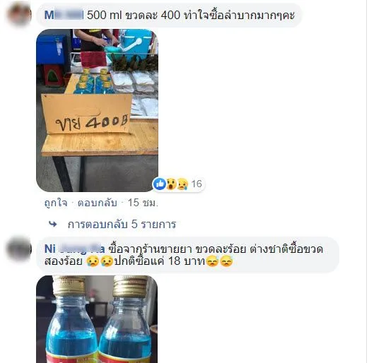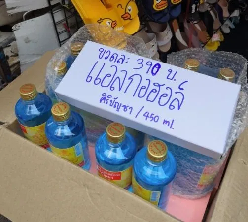 ภาพตัวอย่างของแอลกอฮอล์ที่ถูกพ่อค้าแม่ค้านำไปขายโก่งราคา