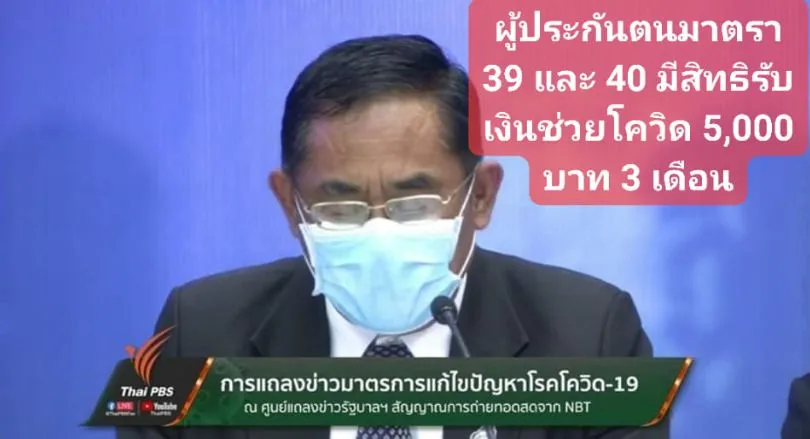 ชัดเจนแล้ว ประกันสังคมมาตรา 39,40 มีสิทธิได้รับเงิน 5,000 บาทด้วย