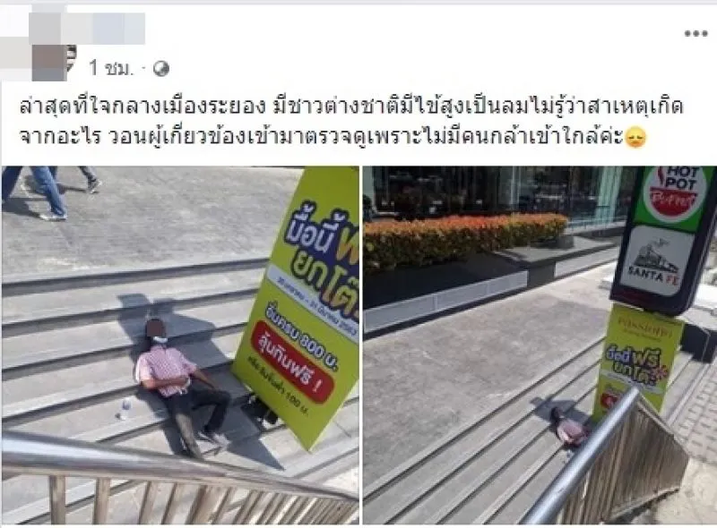 สาวโพสต์เห็นชายต่างชาติ นอนเป็นลมหมดสติ แถมมีไข้สูง ไม่มีใครกล้าเข้าใกล้