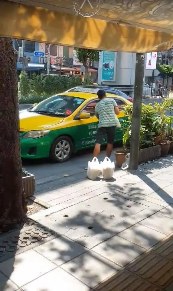 หนุ่มอดไม่ได้ต้องเล่า เห็นชายยืนโบกแท็กซี่คันแล้วคันเล่า แต่ไม่ยอมไปแค่ยื่นถุงข้าวสารให้ พร้อมรอยยิ้ม