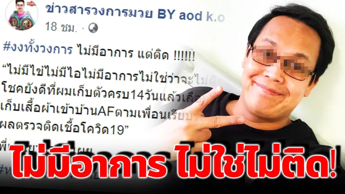 เรียกได้ว่าเป็นเหตุการณ์ที่ทำเอาชาวเน็ตถึงกับต้องแปลกใจอย่างหนัก เมื่อเพจเฟซบุ๊ก ข่าวสารวงการมวย BY aod k.o โพสต์เล่าเรื่้องราวของหนุ่มรายหนึ่ง ที่เดินทางไปยังสถานที่เสี่ยงติดเชื้อ ก่อนจะรับผิดชอบสังคมด้วยการกักตัวเป็นเวลา 14 วัน จากนั้นได้ลองไปตรวจเพื่อความแน่ใจ ปรากฎว่าเจ้าตัวติดเชื้อ โควิด-19 ทั้ง ๆ ที่ไม่มีไข้ ไม่มีไอ ไม่มีอาการบ่งบอกใด ๆ ว่าจะติดเชื้อ