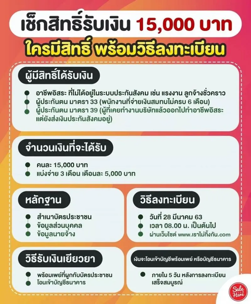 ตรียมความพร้อม เช็กสิทธิ์ รับเงิน 15000 บาท มาตรการเยียวยาลูกจ้าง ที่ได้รับผลกระทบจากโควิด-19 โดยชดเชยเป็นเวลา 3 เดือน เดือนละ 5000 บาท และจำกัดสิทธิ์ที่ 3 ล้านคนเท่านั้น ใครเป็นผู้ได้รับสิทธิ์นั้นบ้าง และมีวิธีลงทะเบียนอย่างไร มาเช็กกันได้ที่โพสต์นี้เลยจ้าา