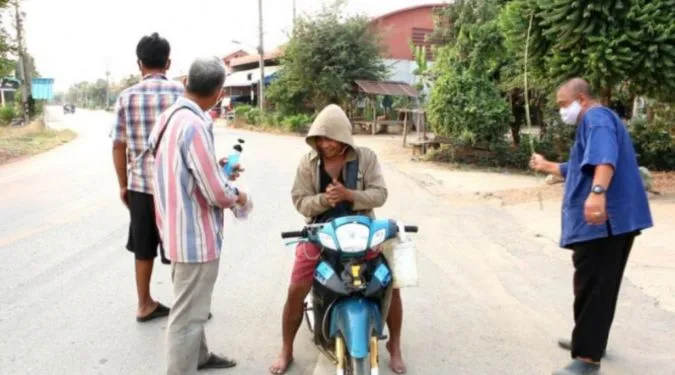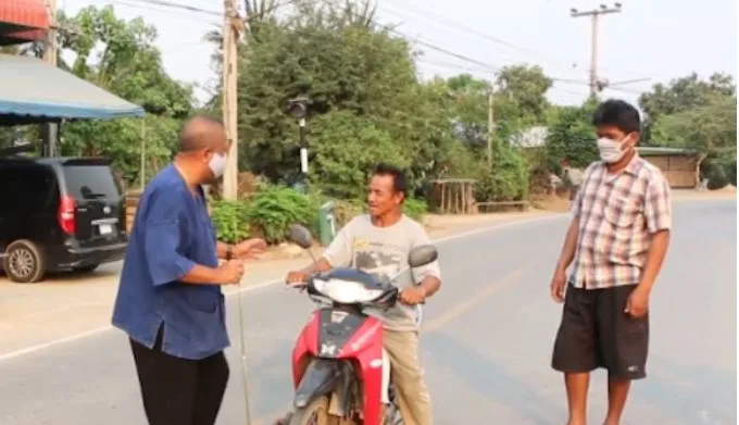 นายกอบต.วังชะโอน ตั้งด่านสกัดคนไม่ใส่แมส ใช้ไม้เรียวหวดเพื่อชาติ ลั่น จะไม่ยอมให้ไวรัสมาแพร่ระบาดในตำบลนี้อย่างเด็ดขาด
