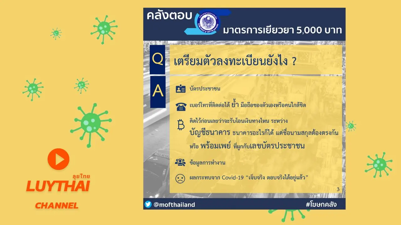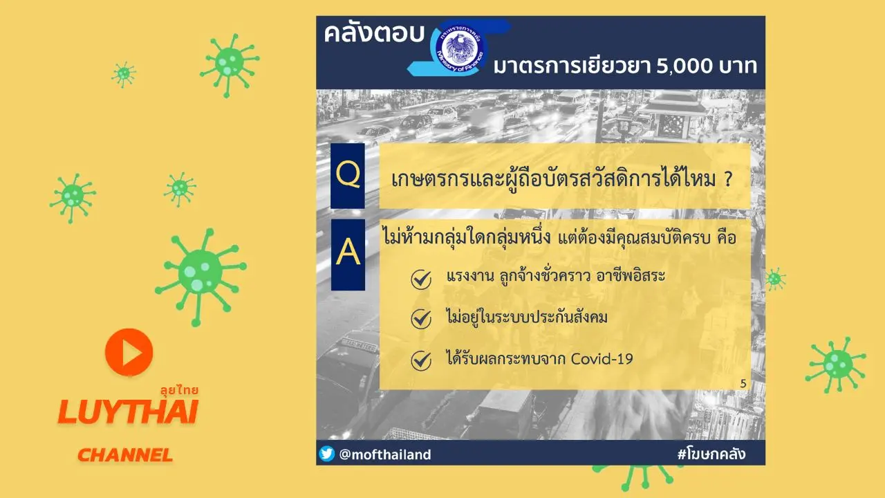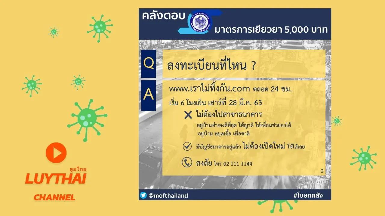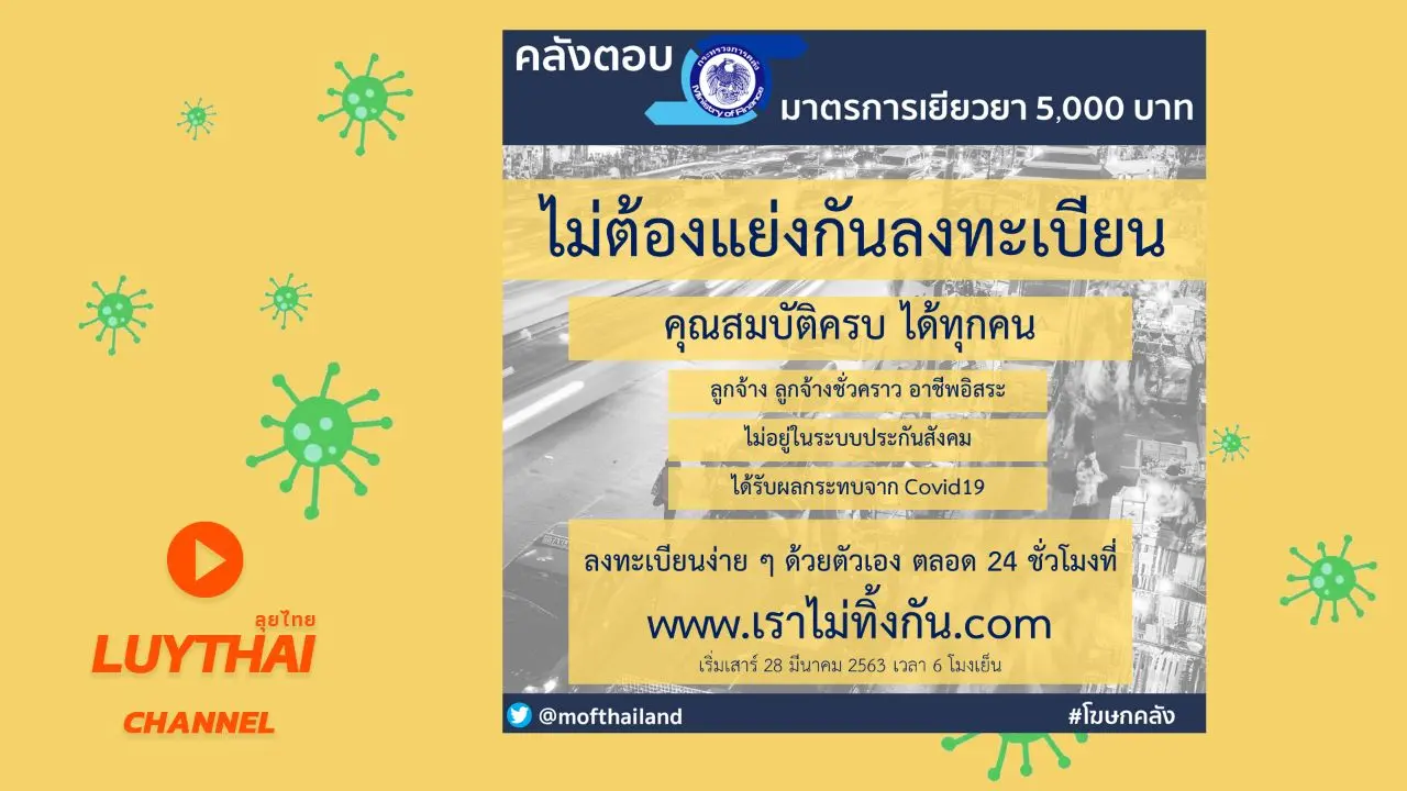 มาตรการเยียวยา 5,000 บาท (3 เดือน) ไม่ต้องไปที่ธนาคาร