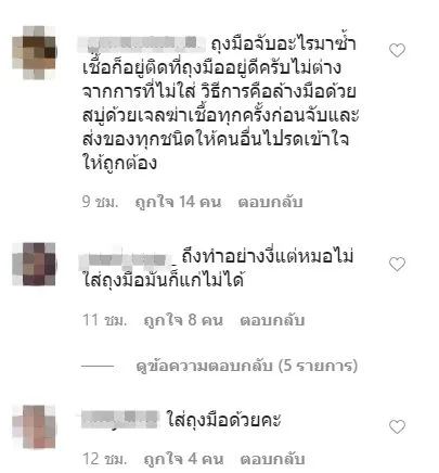 โดยงานนี้ ชาวเน็ตต่างเข้ามาเเสดงความคิดเห็นกันอย่างมากมาย อาทิเช่น แล้วทำไมหมอไม่ใส่ถุงมือ เเละ ถุงมือจับอะไรมาซ้ำเชื้อก็อยู่ติดที่ถุงมืออยู่ดีครับไม่ต่างจากการที่ไม่ใส่ วิธีการคือล้างมือด้วยสบู่ด้วยเจลฆ่าเชื้อทุกครั้งก่อนจับและส่งของทุกชนิดให้คนอื่นโปรดเข้าใจให้ถูกต้อง