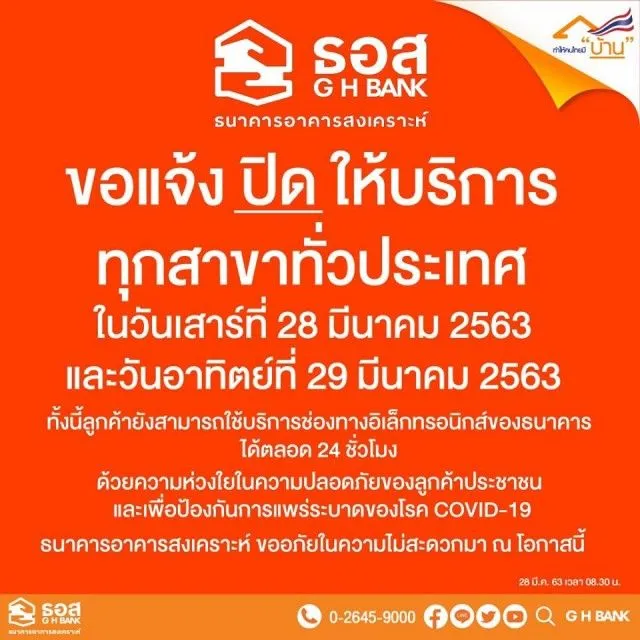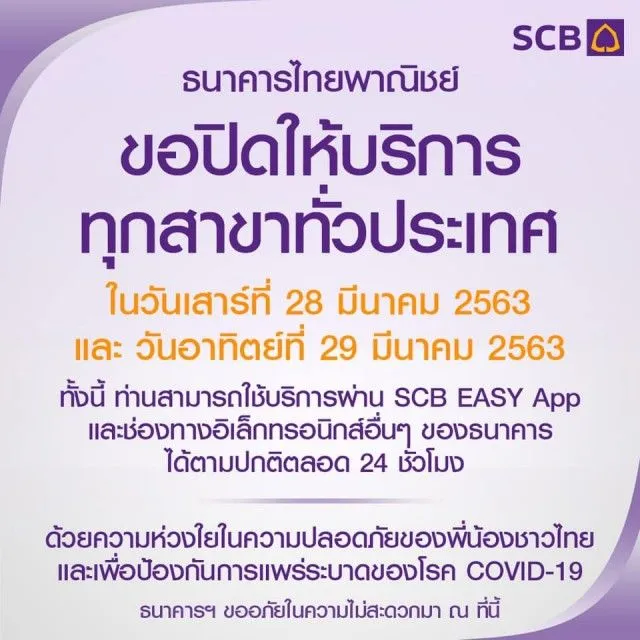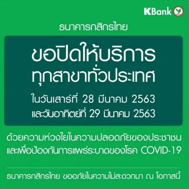 วันที่ 28 ถึง 29 มีนาคม นี้ หลายธนาคารปิดสาขาชั่วคราว เลี่ยงความแออัดเสี่ยงต่อการติด COVID 19 จากการสำรวจมีประมาณ 10 ธนาคาร คือ