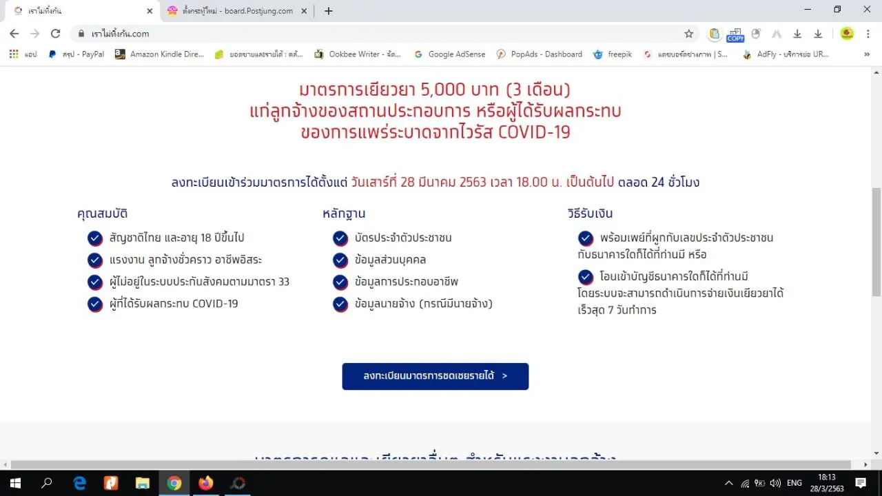 จากมาตาการเยียวยาของรัฐบาลที่ให้คนมาลงทะเบียน ในวันที่ 28 มีนาคม 2563 เวลา 18.00 น. เป็นต้นไป ผ่านเว็บไซต์