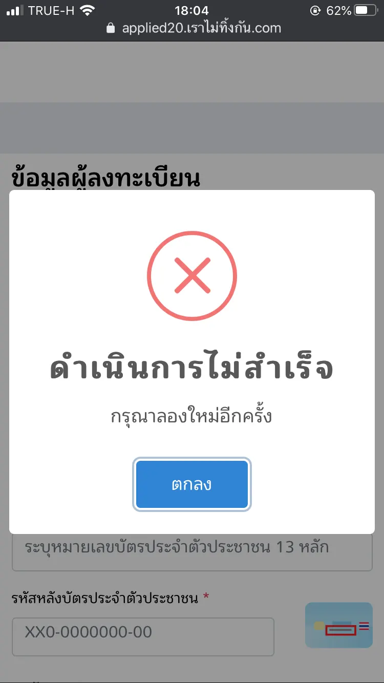 ปล. หากท่านโชคร้าย เจอข้อความว่า "ดำเนินการไม่สำเร็จ" กรุณาทำใจเย็นๆ แล้วไปพักผ่อนตามอัธยาศัย รอสักชั่วโมงสองชั่วโมง แล้วค่อยมาลองเข้าดูใหม่ หากยังไม่ได้อีก ขอแนะนำให้มาลองใหม่ในวันถัดไป