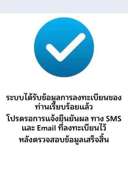 ขั้นตอนหลังจากนี้ ก็อาจจะมีการยืนยัน OTP ผ่านหมายเลขโทรศัพท์มือถือ หรืออะไรก็ทำตามขั้นตอนที่หน้าเว็บแจ้ง เสร็จแล้วจะเห็นข้อความแจ้งว่า ได้รับข้อมูลการลงทะเบียนเรียบร้อยแล้ว