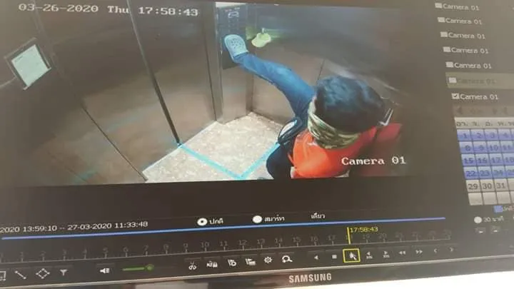 กล้องวงจรปิดแฉพฤติกรรมพนักงานส่งอาหารรายหนึ่งหลังใช้เท้ากดลิฟท์ของคอนโดแห่งหนึ่งจนเป็นรอยรองเท้าประทับอยู่ที่ตัวลิฟท์ เป็นการกระทำที่ไร้มารยาทอย่างมาก