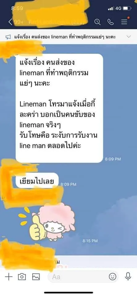 ทางผู้ที่พักอาศัยภายคอนโดเมื่อทราบเรื่องก็ได้แจ้งเรื่องร้องเรียนไปยังบริษัทไลน์แมน