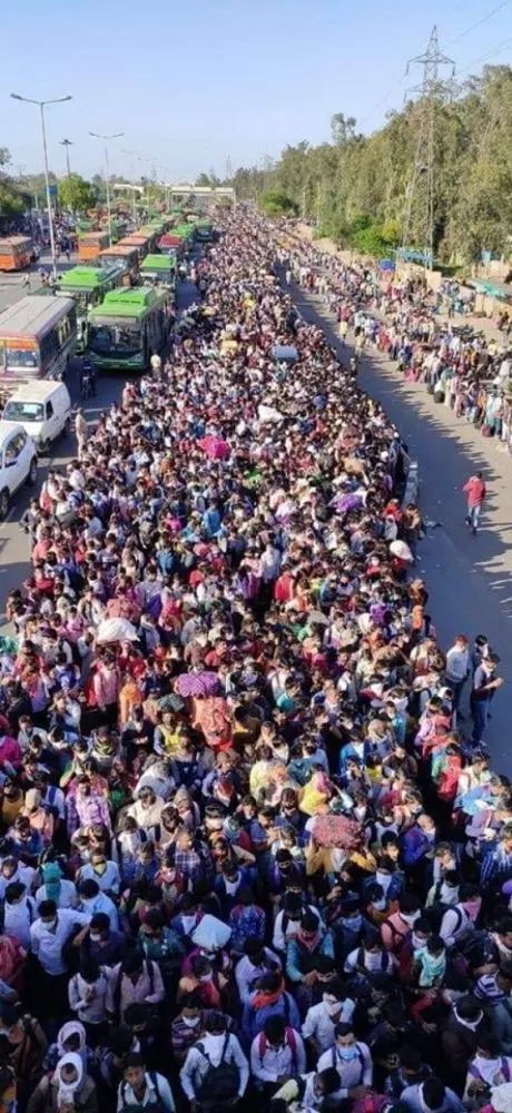 อย่างไรก็ตาม ล่าสุด ที่เพจ Life in india ได้เผยแพร่ภาพบรรยากาศที่เกิดขึ้น หลังการออกประกาศล็อกดาวน์ดังกล่าว ที่เกิดขึ้นอย่างกะทันหัน ส่งผลให้แรงงานหลายพันคนในเมืองนิวเดลี ตกงาน ไม่สามารถทำงานได้ ไม่มีเงิน จึงต่างพยายามอพยพเพื่อเดินทางเพื่อกลับไปยังหมู่บ้านของพวกเขาในแคว้นมคธรัฐอุตตร ประเทศเบงกอล และรัฐอื่น ๆ ที่เป็นไปด้วยความยากลำบาก